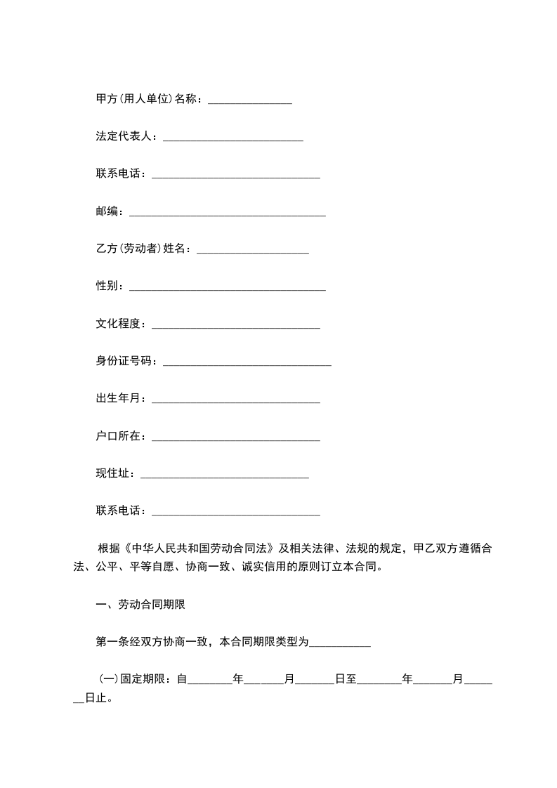 (一)固定期限:自________年_______月_______日至________年_______月_______日止。