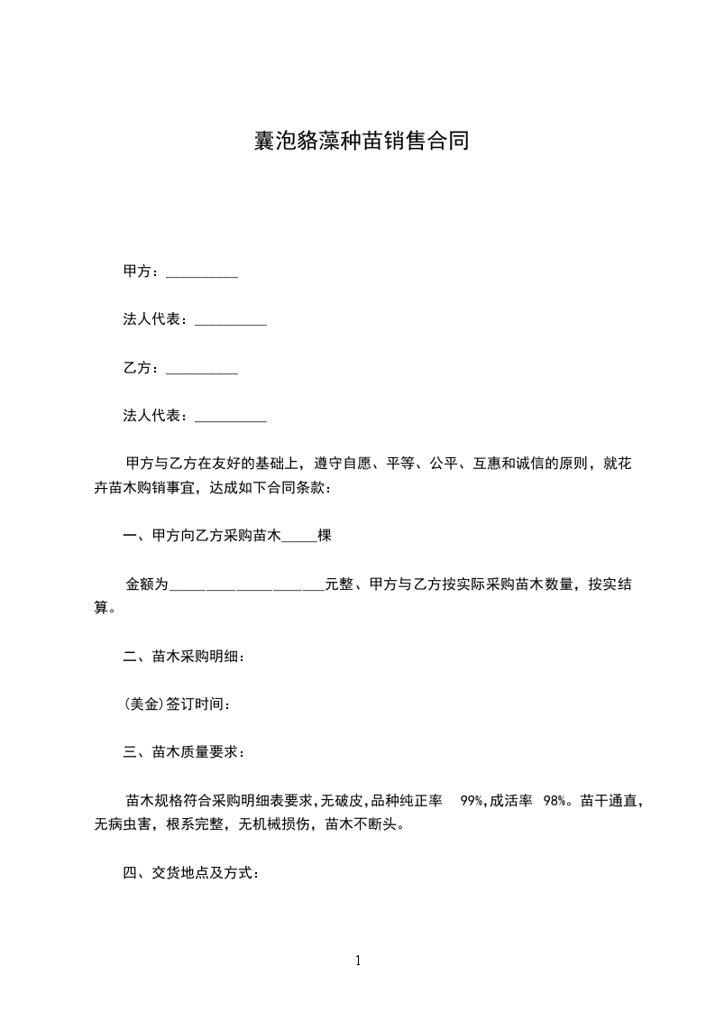 一、甲方向乙方采购苗木_____棵