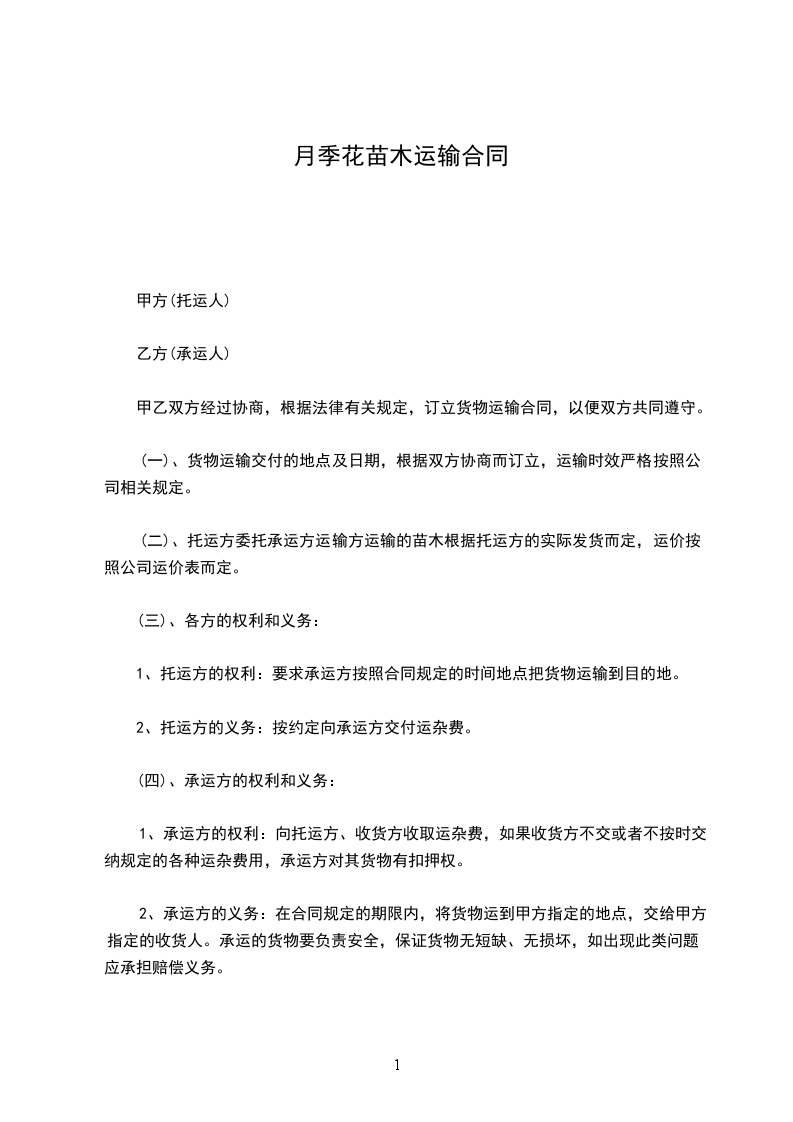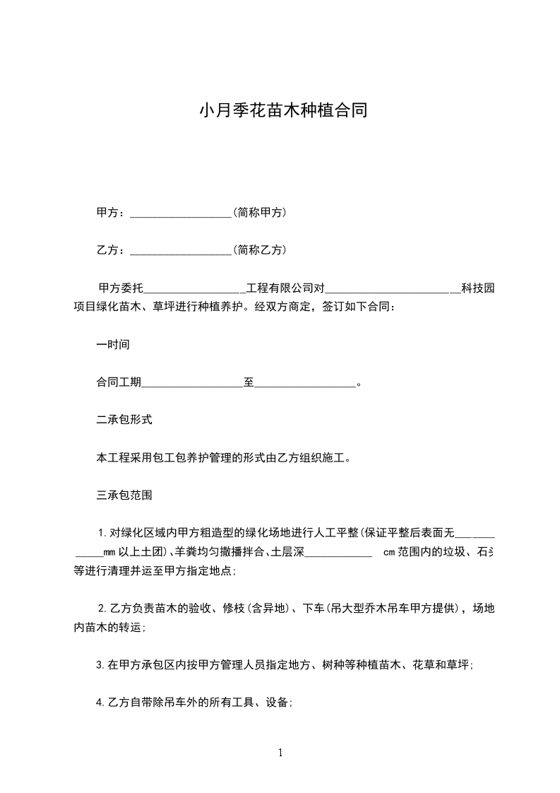 月季花苗木销售合同