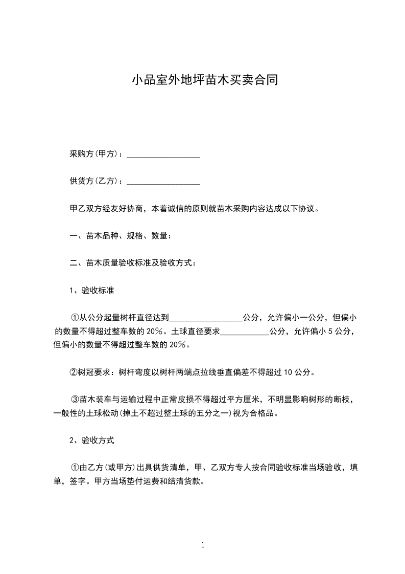 甲方向乙方采购苗木______株,金额为______人民币。甲方与乙方按实际采购苗木数量,按实结算。
