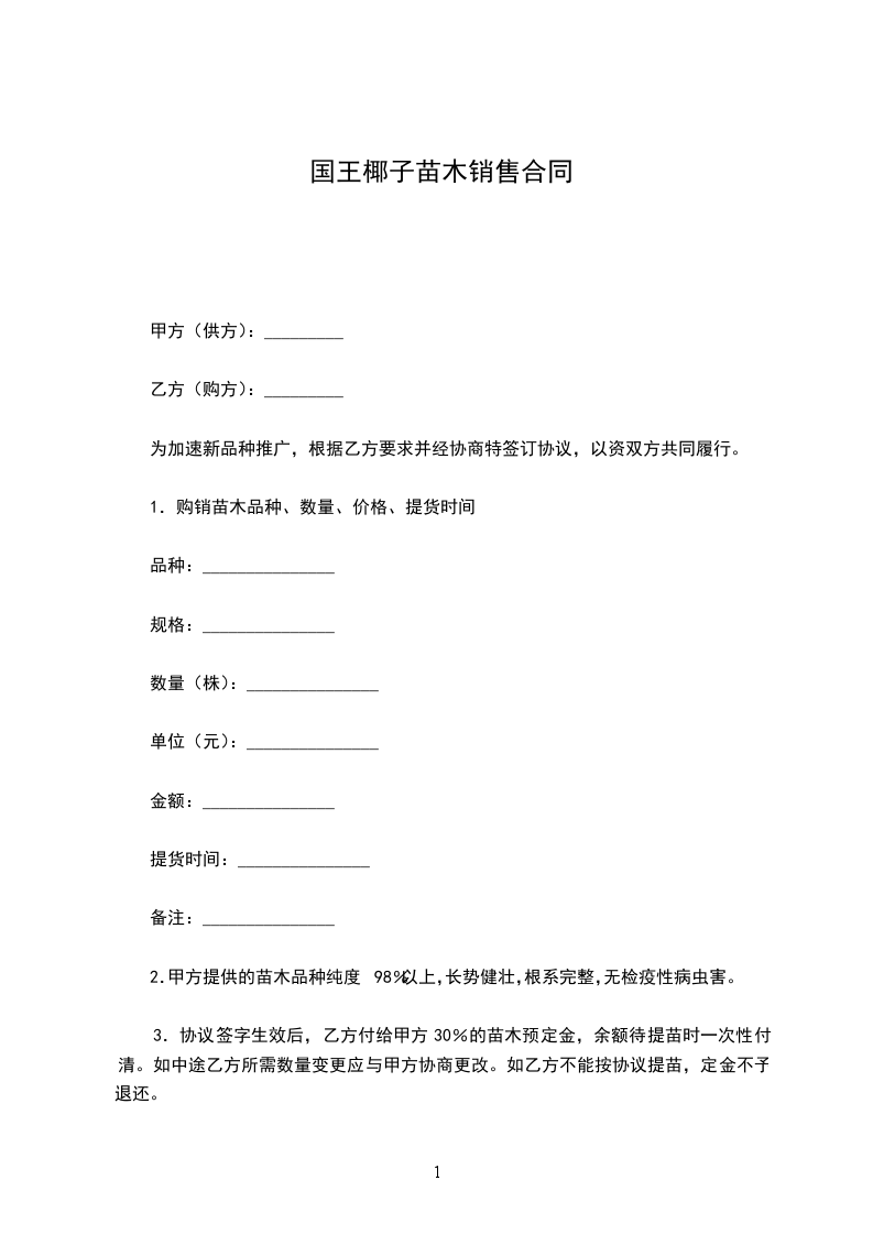3.协议签字生效后,乙方付给甲方30%的苗木预定金,余额待提苗时一次性付清。如中途乙方所需数量变更应与甲方协商更改。如乙方不能按协议提苗,定金不予退还。