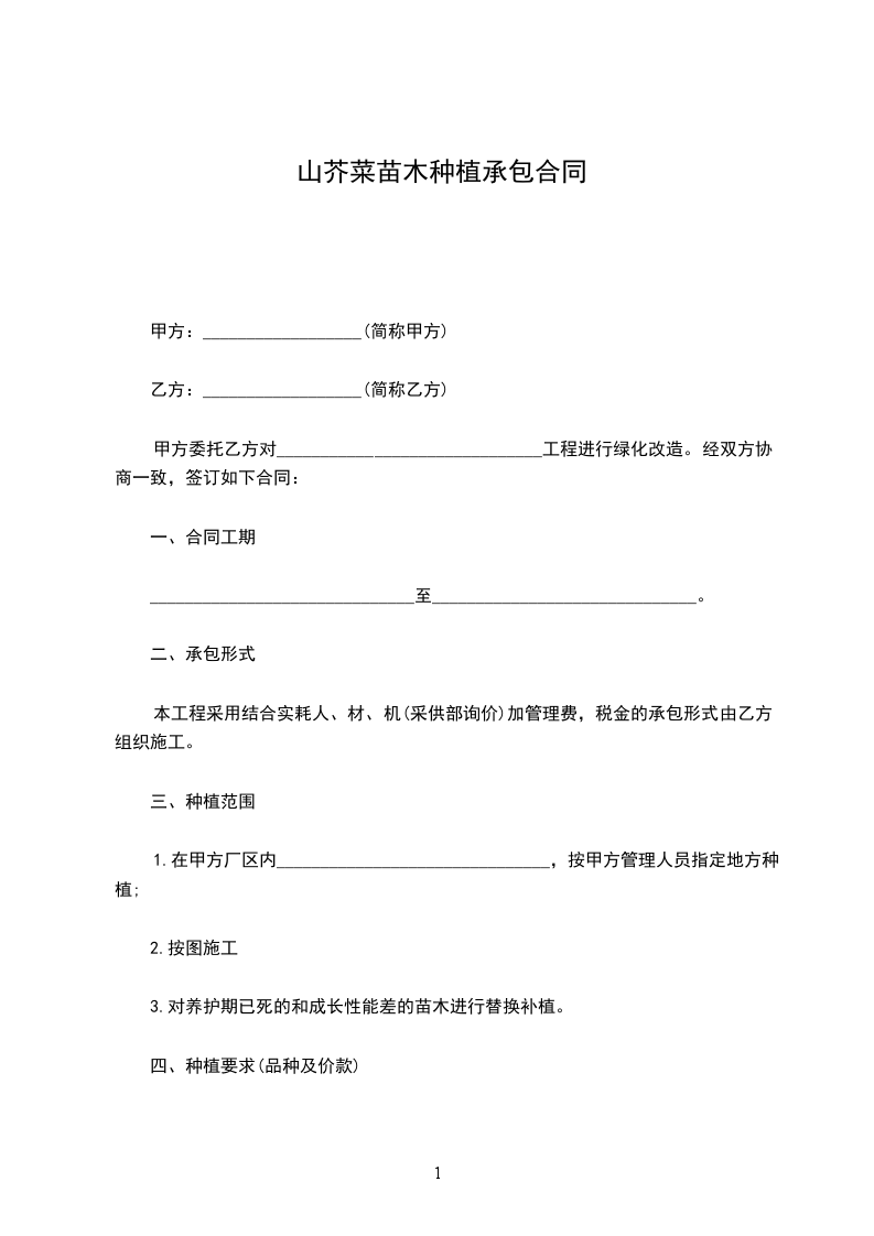 山芥菜苗木买卖合同