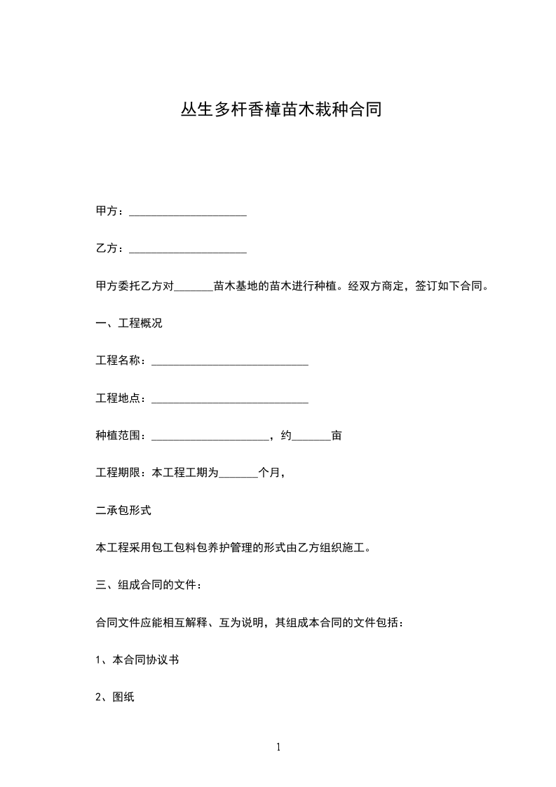 1.购销苗木品种、数量、价格、提货时间