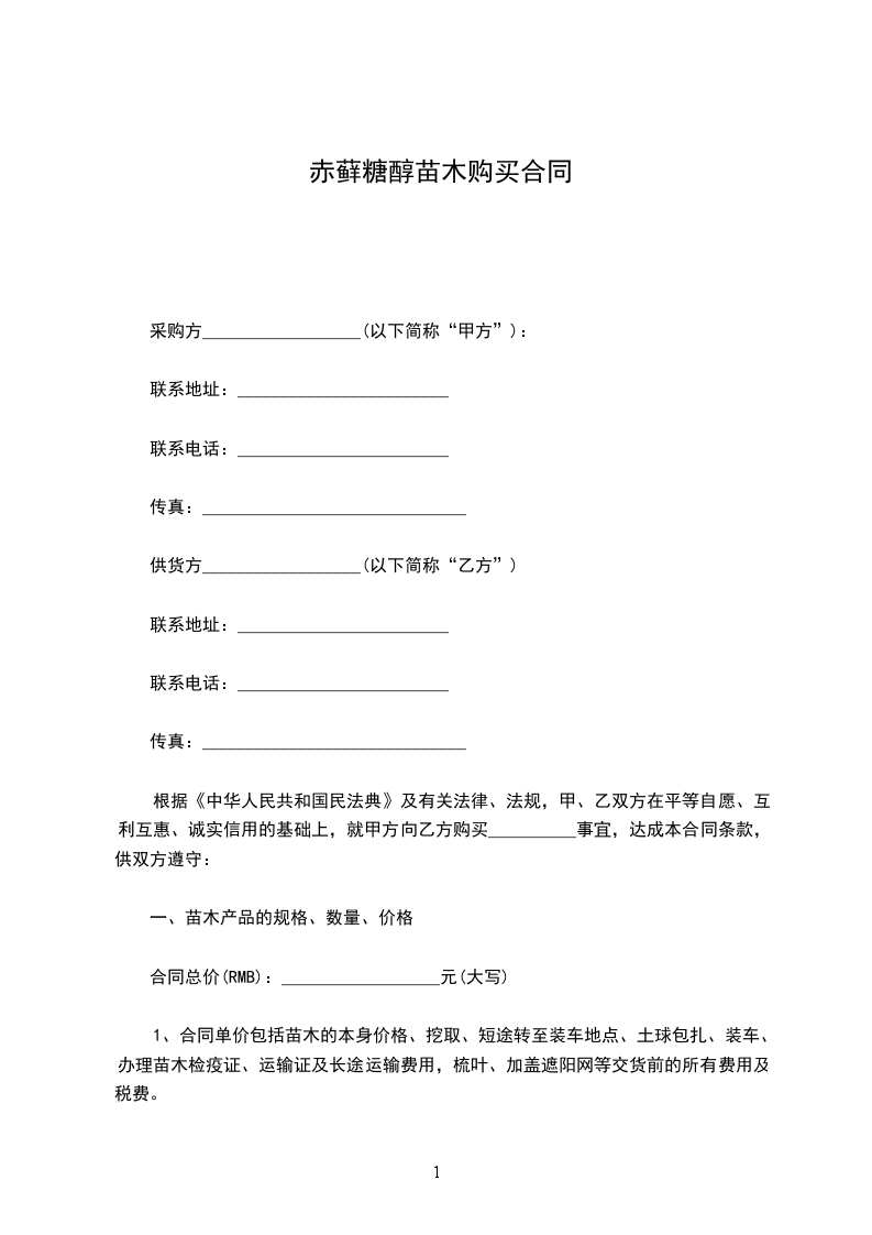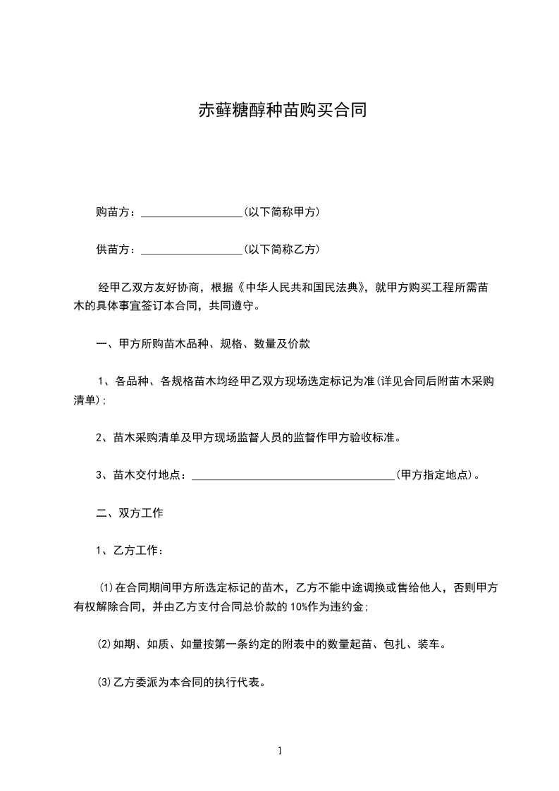 2、若一方终止合同,应向另一方赔偿经济损失。若遇天灾苗木损失严重,则甲方在提苗木前10天通知乙方按比例缩减。