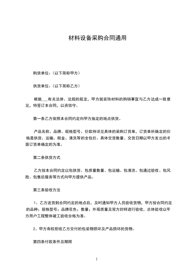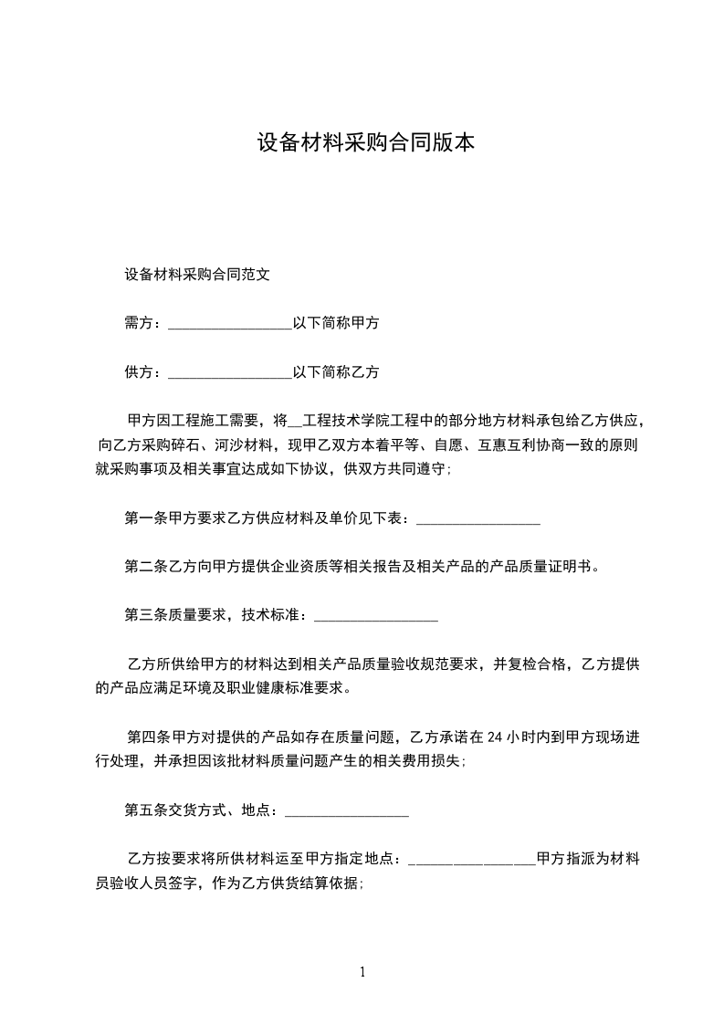 合同签订后,需方预付20%的设备款(即人民币_______元)做为预付款,需方在货到工地安装完成,并检查合格后,两日内支付设备款的70%和安装费(即人民币_______元),设备款的10%为保质金(即人民币______元),12个月后付清,12个月内如出现质量问题由供方负责解决。