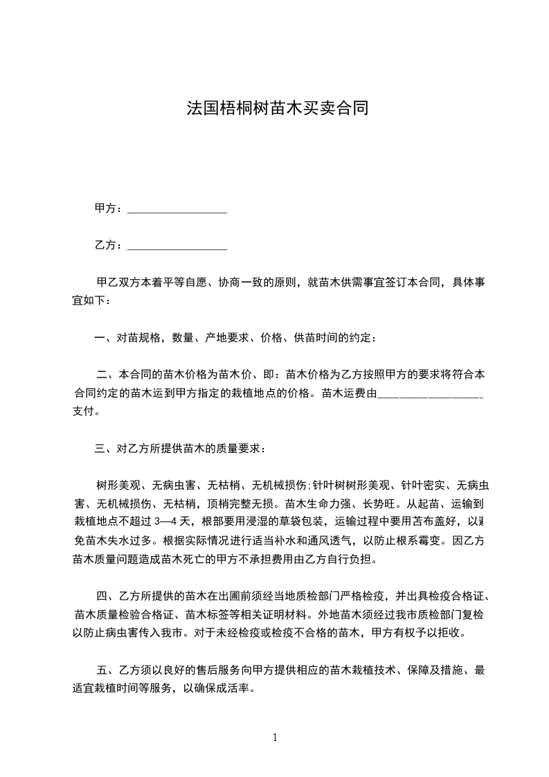 一、甲方向乙方采购苗木株,金额为人民币__________。甲方与乙方按实际采购苗木数量,按实结算。
