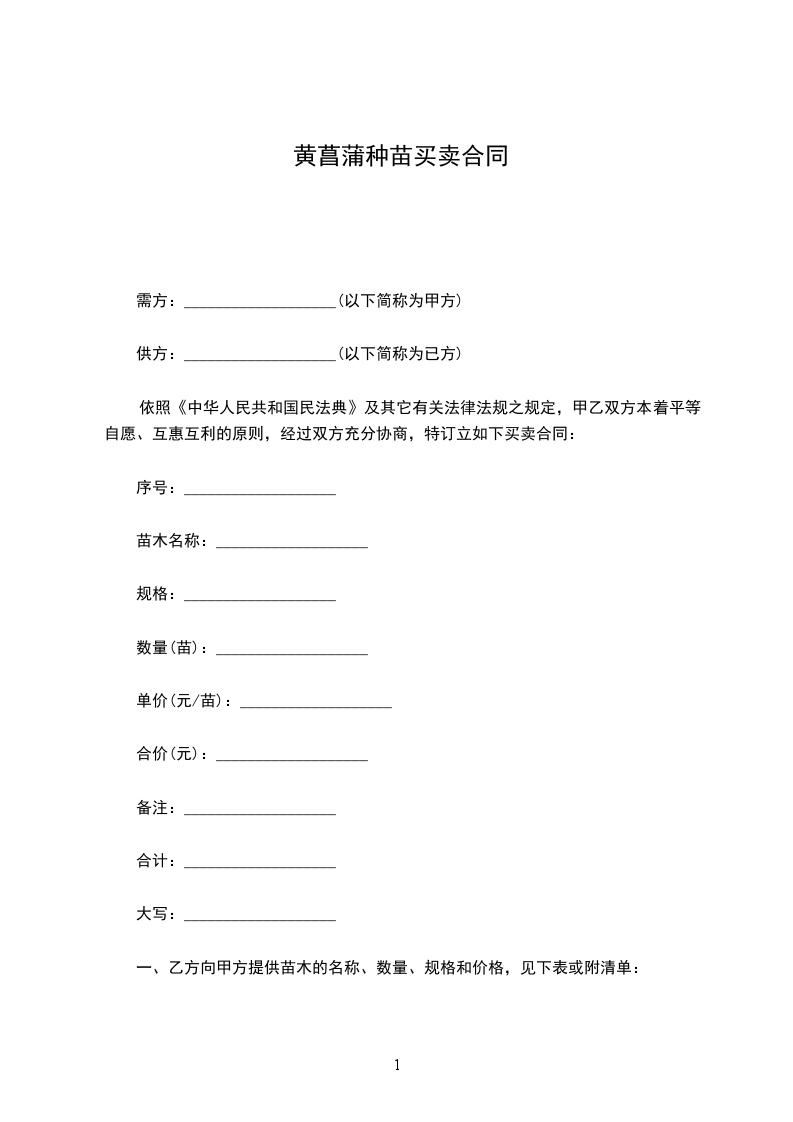 一、乙方订购甲方花卉种苗,明细如下:总金额:____________万元整(¥______元)