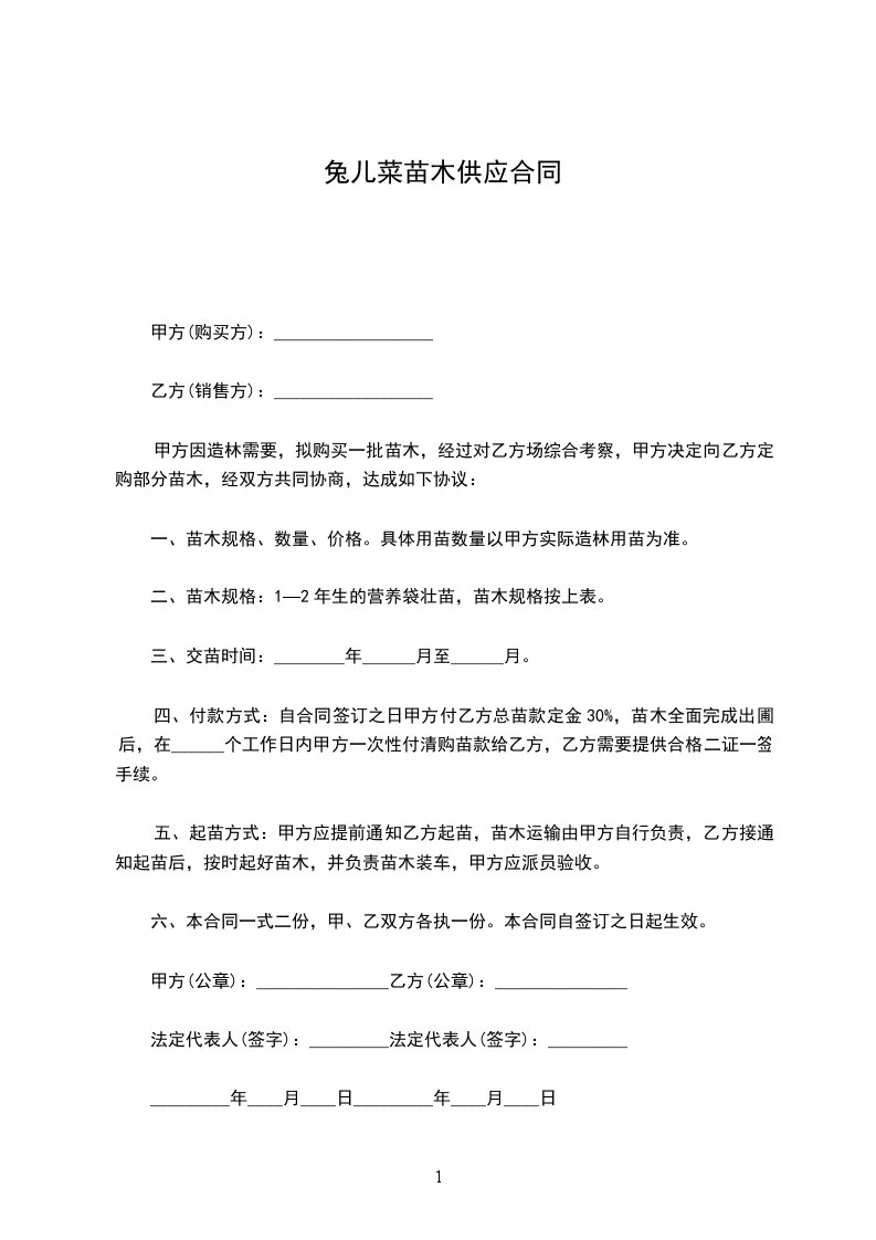 (4)乙方必须在___天内完成全部操作,即从合同签订生效日至所有苗木供应完毕为期___天。