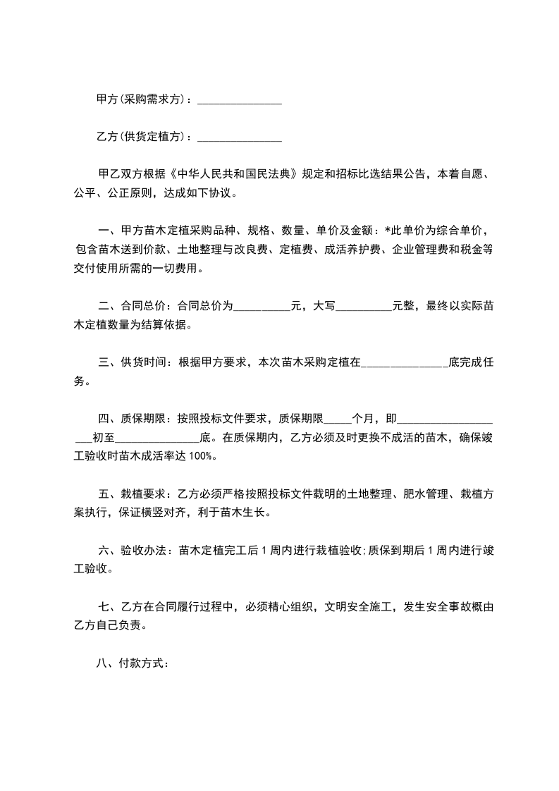 ②苗木长途运费由甲方支付,运货方需提供正规的运输发票。