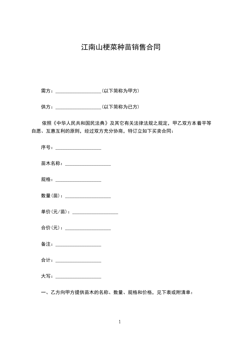 1.供苗时间、地点:乙方于______年_____月_____日至______年_____月_____日向甲方提供上述苗木。具体交货日期由甲方在上述时间段内自行确定,但须提前3天通知乙方。