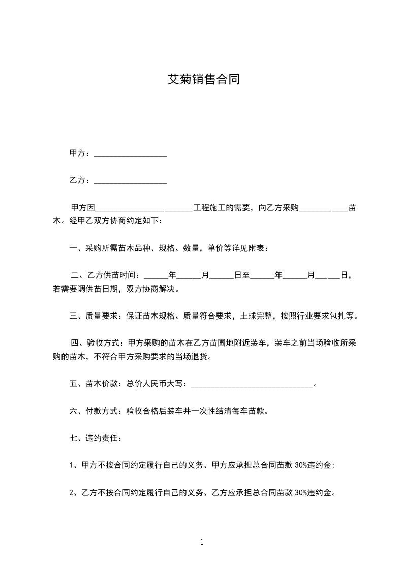 一、甲方向乙方采购苗木_____棵
