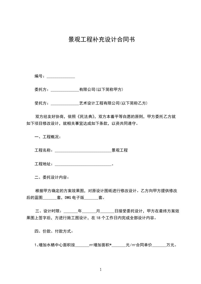 1、增加水栖中心面积按_______㎡增加面积*_______元/㎡合同单价_______万元。