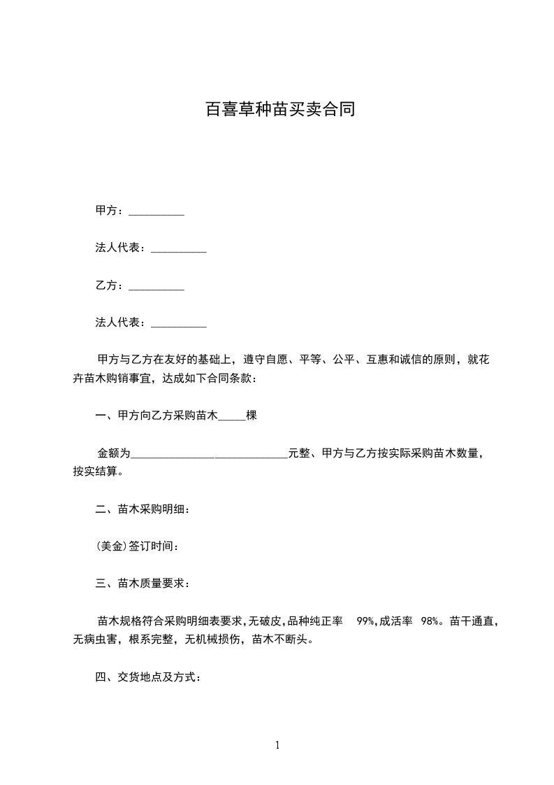 一、甲方向乙方采购苗木_____棵