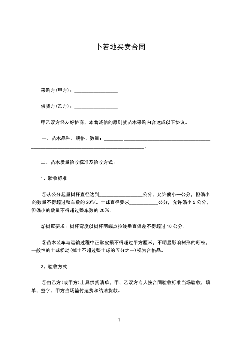 1、甲方应按合同规定的时间和质重,提供给乙方所需的苗木,保证不提供假苗。