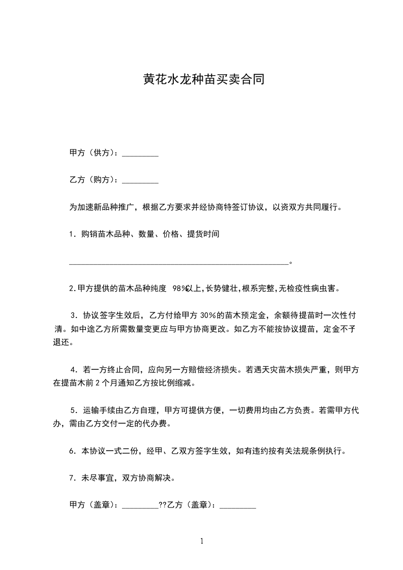 黄花水龙种苗买卖合同