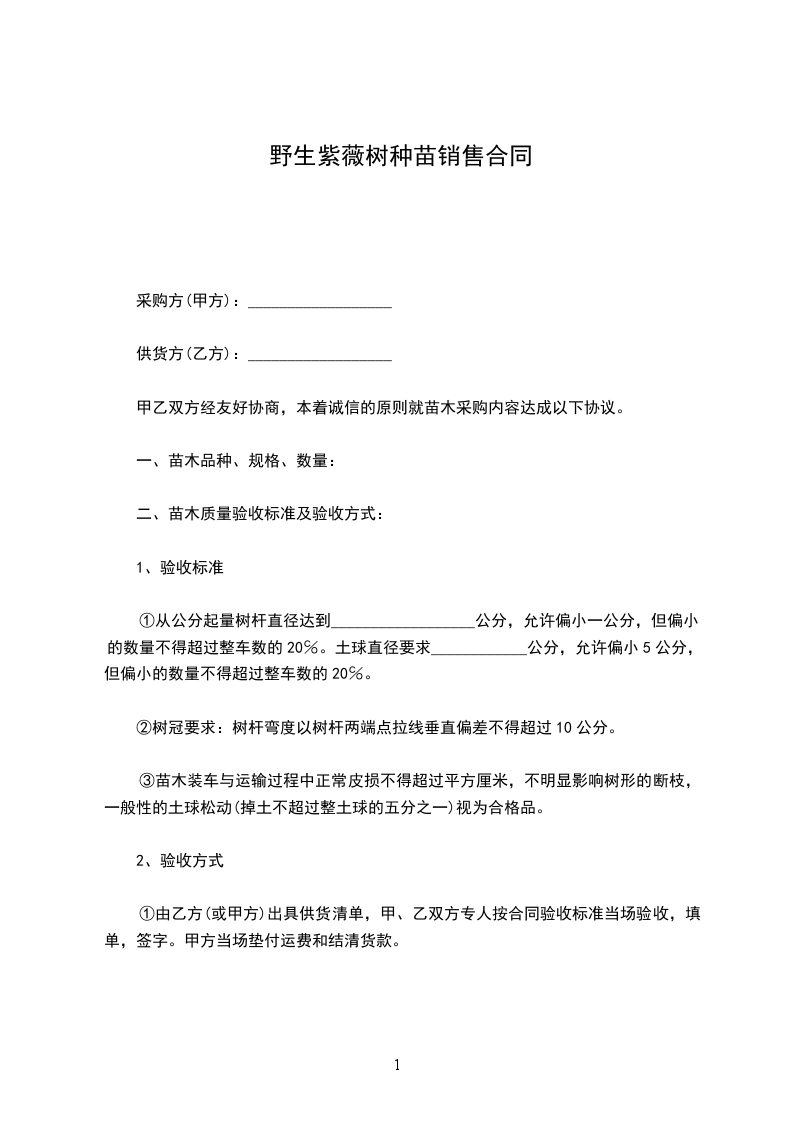 1、甲方应按合同规定的时间和质重,提供给乙方所需的苗木,保证不提供假苗。