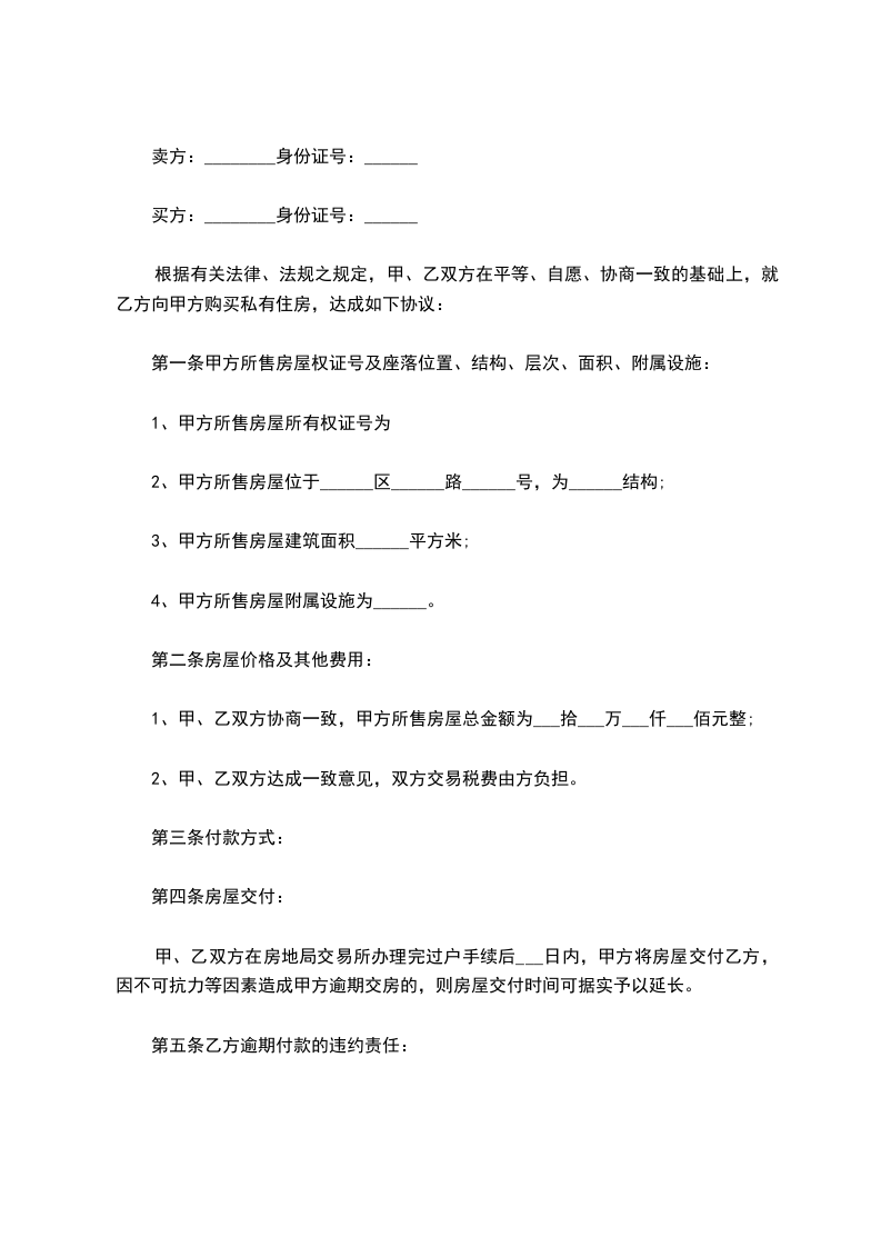 第一条 上述房屋由乙方售给甲方,全部价款共计人民币:_________元。