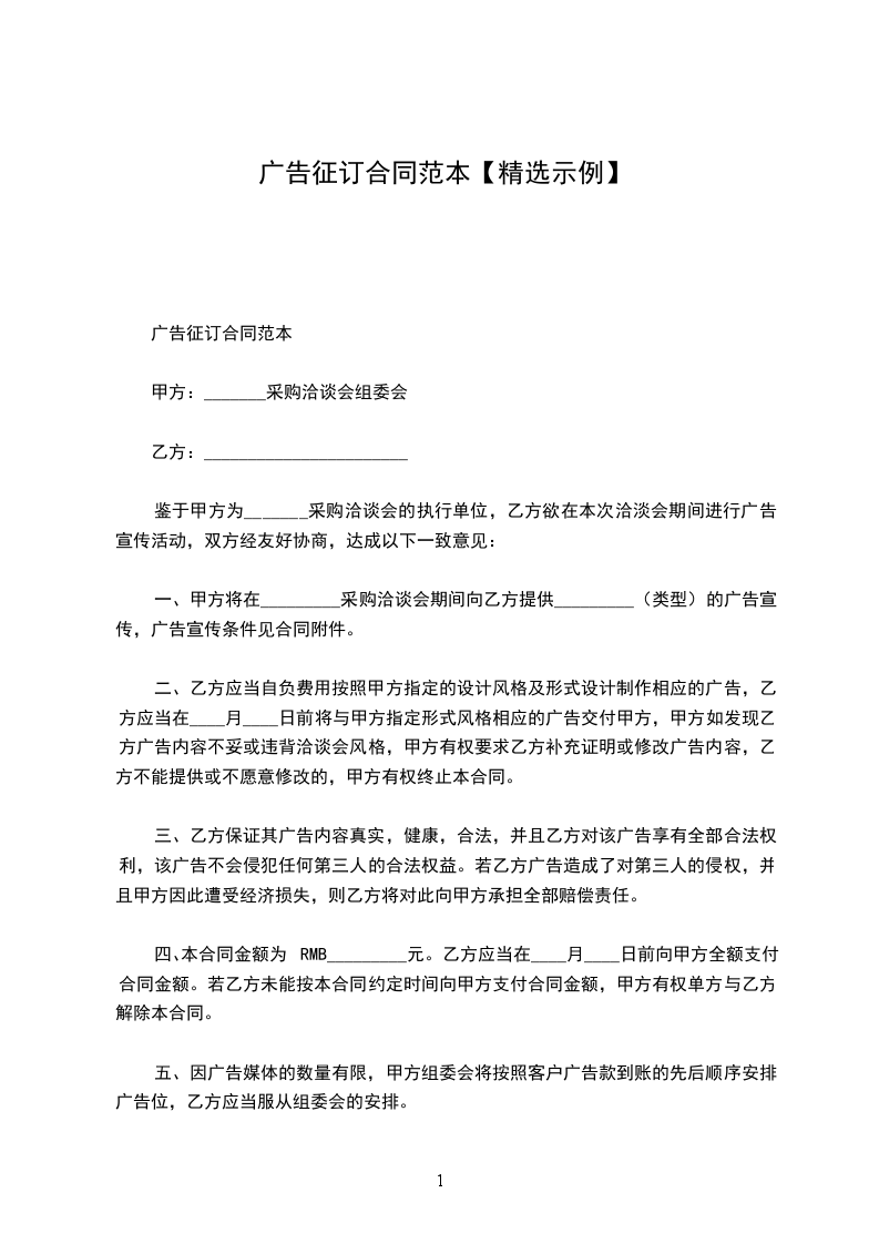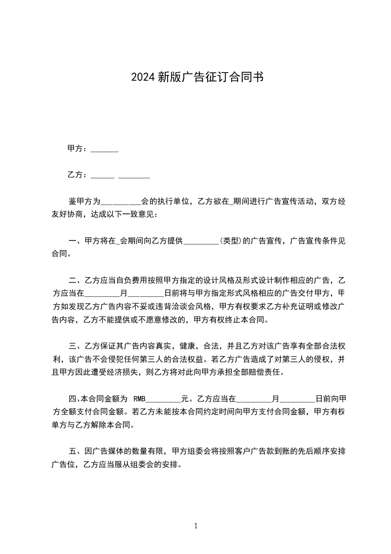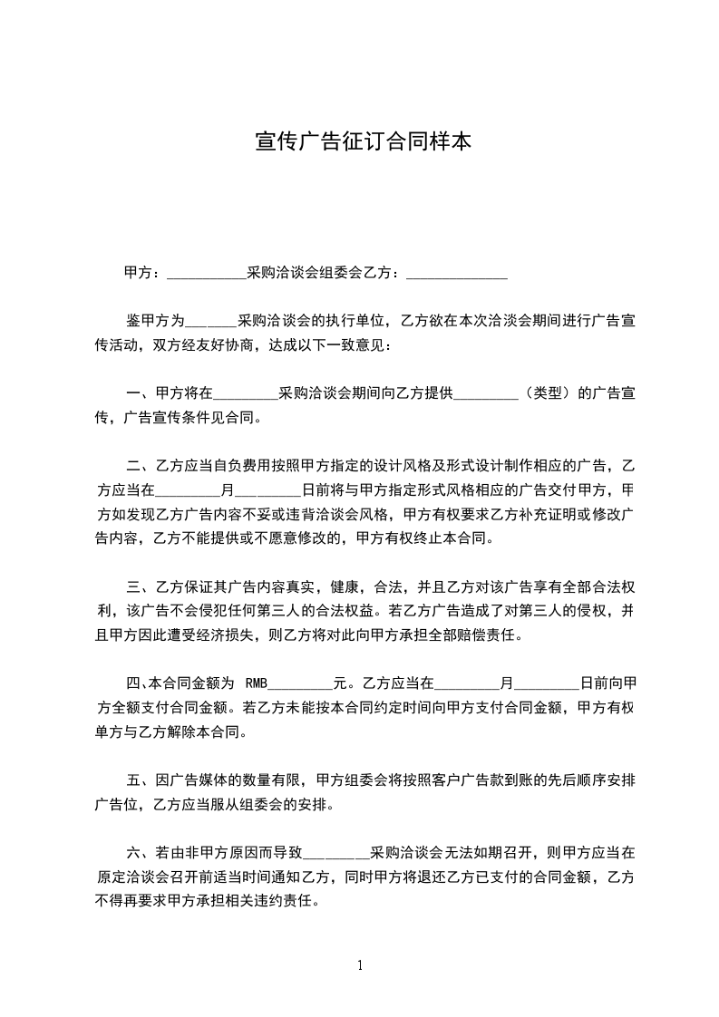 一、甲方将在____________会期间向乙方提供_________(类型)的广告宣传,广告宣传条件见合同附件。
