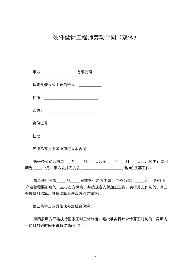 1.乙方的工作内容(岗位或工种)