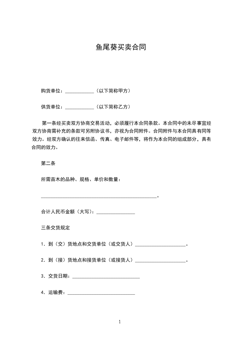 一、甲方向乙方采购苗木_____棵