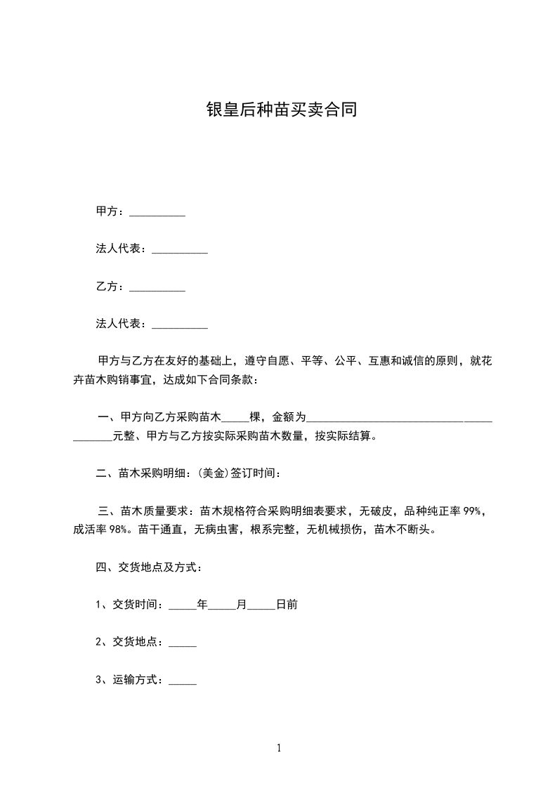 一、甲方向乙方采购苗木_____棵,金额为________________________________________元整、甲方与乙方按实际采购苗木数量,按实际结算。