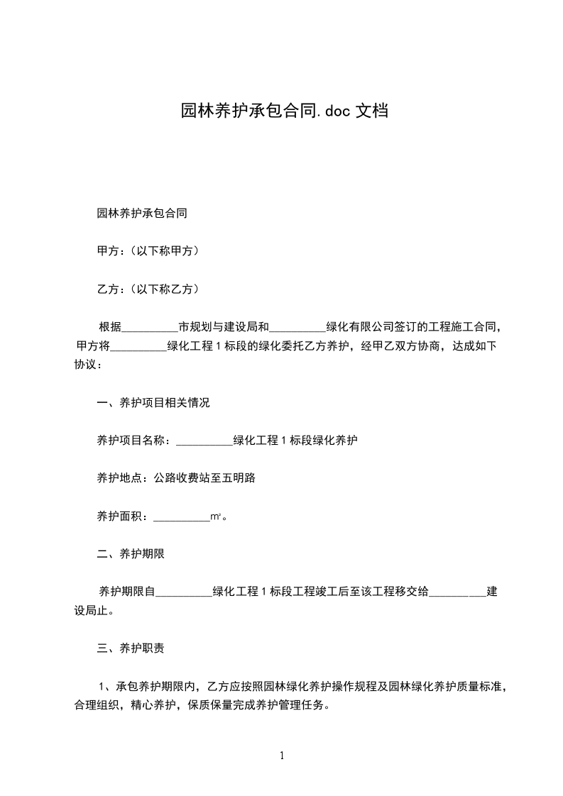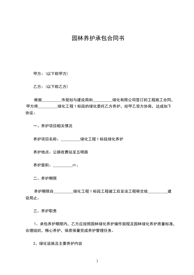 根据__________市规划与建设局和__________绿化有限公司签订的工程施工合同,甲方将__________绿化工程1标段的绿化委托乙方养护,经甲乙双方协商,达成如下协议: