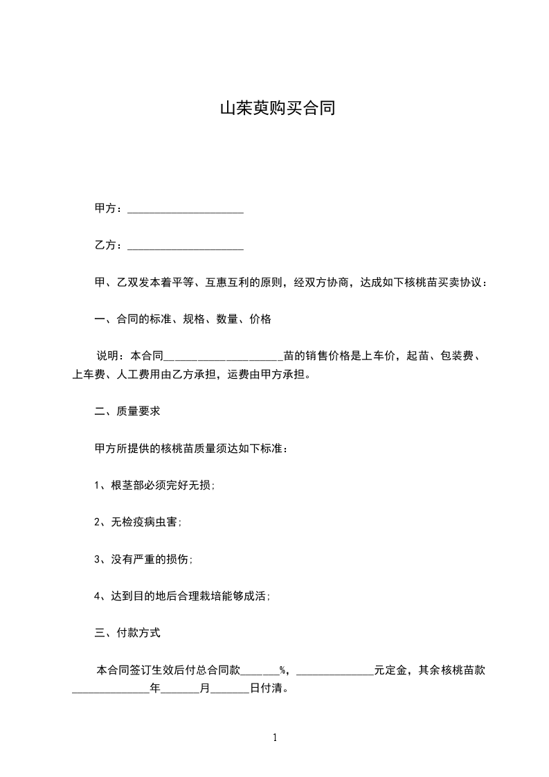 山茱萸苗木购买合同