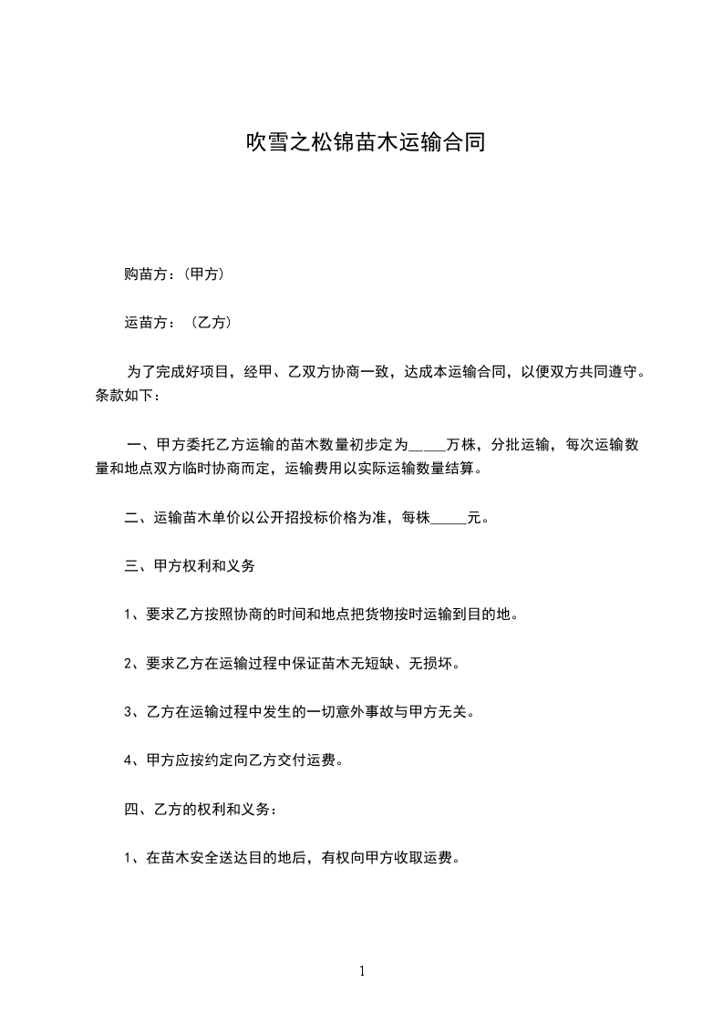 五、苗木质量:乙方保证所供苗木达到甲方的质量要求,不符合要求的苗木,甲方立即退货并不予支付任何款项。