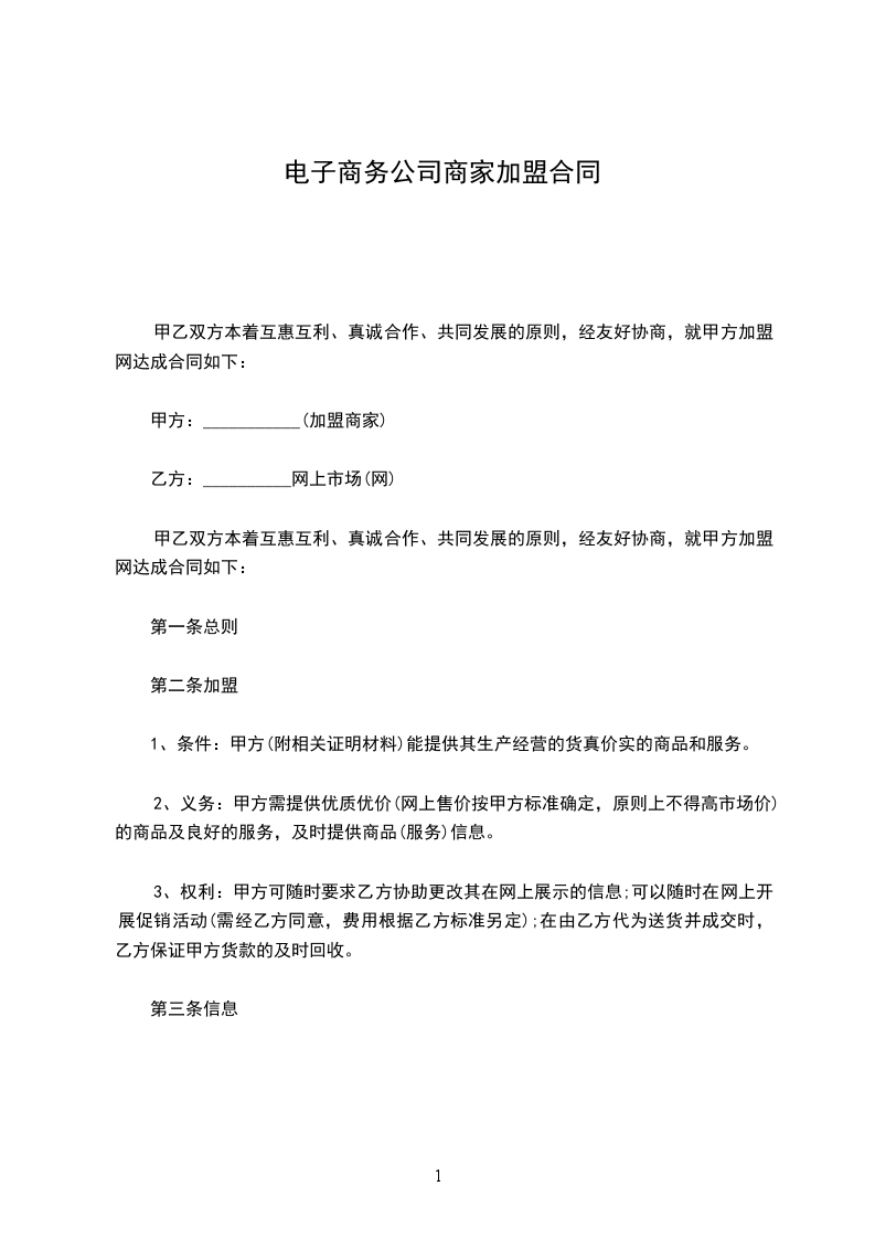 甲乙双方本着互惠互利、真诚合作、共同发展的原则,经友好协商,就甲方加盟 网达成合同如下电子商务网站商家加盟合同范本: