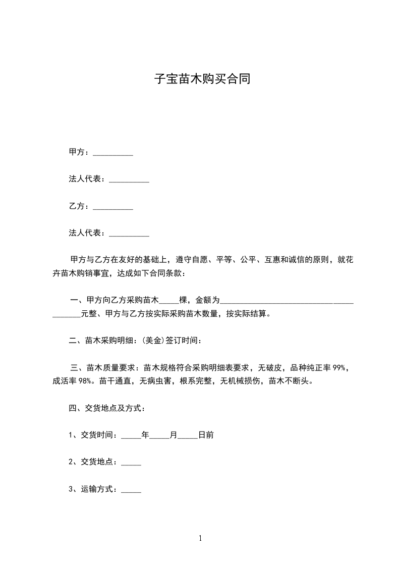 子宝苗木购买合同