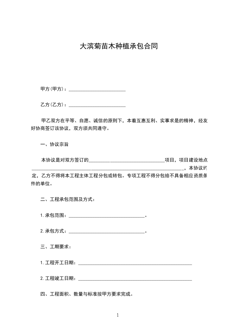 一、甲方向乙方采购苗木,具体的苗木品种为________________,规格为________________厘米,数量为________株,树龄为________年。