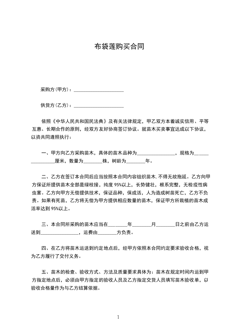 4、本合同为苗木买卖合同,乙方不承担甲方苗木成活率任何风险,但有为甲方提供技术指导的义务。