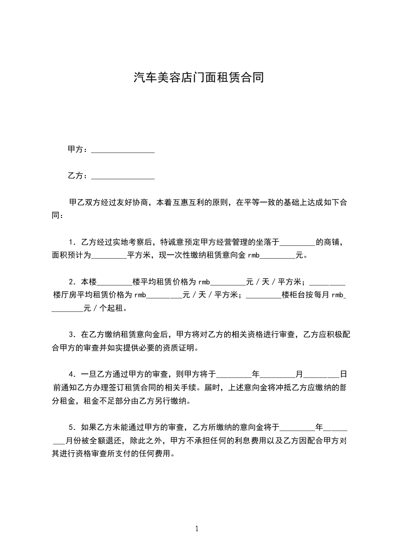 1.乙方经过实地考察后,特诚意预定甲方经营管理的坐落于_________的商铺,面积预计为_________平方米,现一次性缴纳租赁意向金rmb_________元。