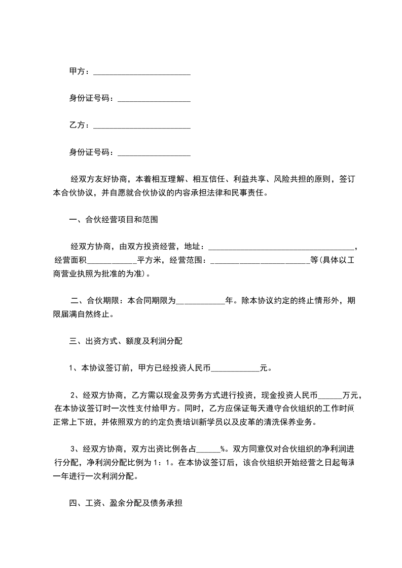 五、乙方接手经营前该店铺及营业执照上所载企业所欠一切债务由甲方负责偿还,与乙方无关。