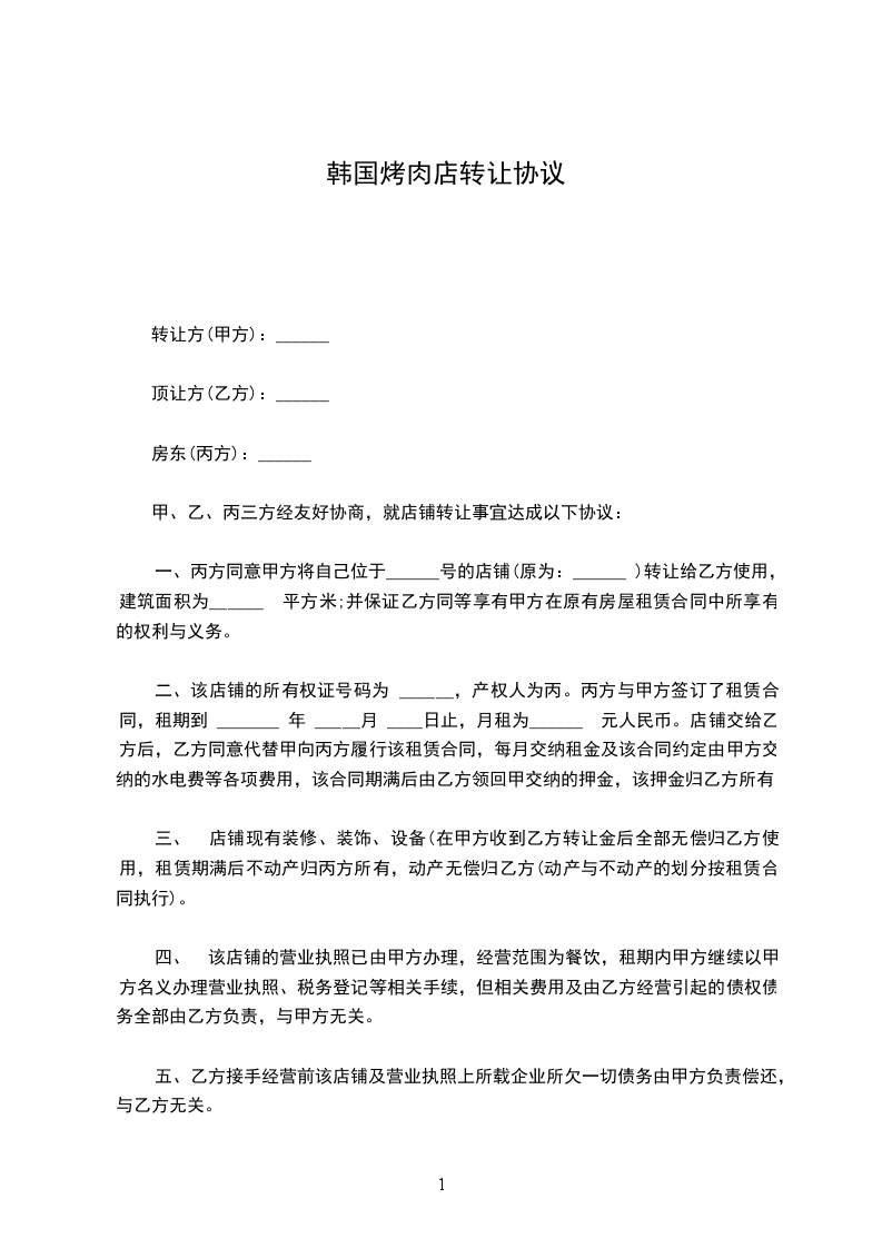 甲、乙、丙三方经友好协商,就店铺转让事宜达成以下协议: