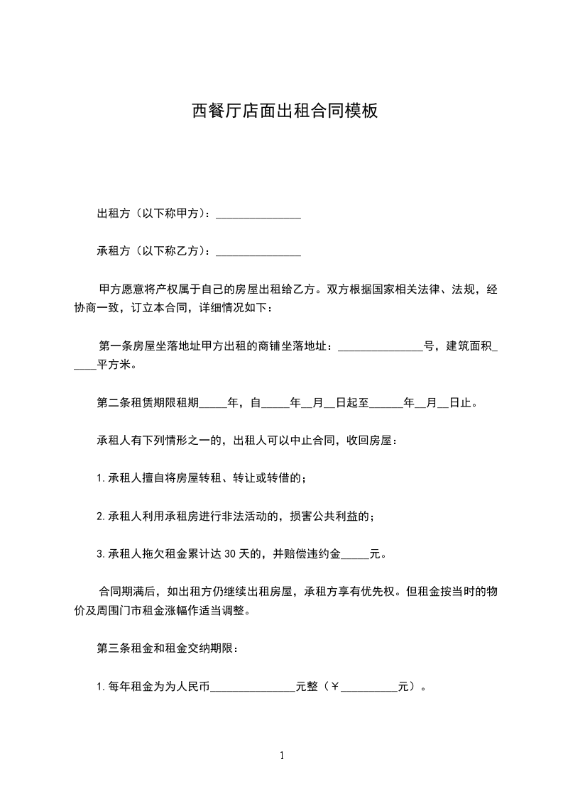 第一条房屋坐落地址甲方出租的商铺坐落地址:_______________号,建筑面积_____平方米。