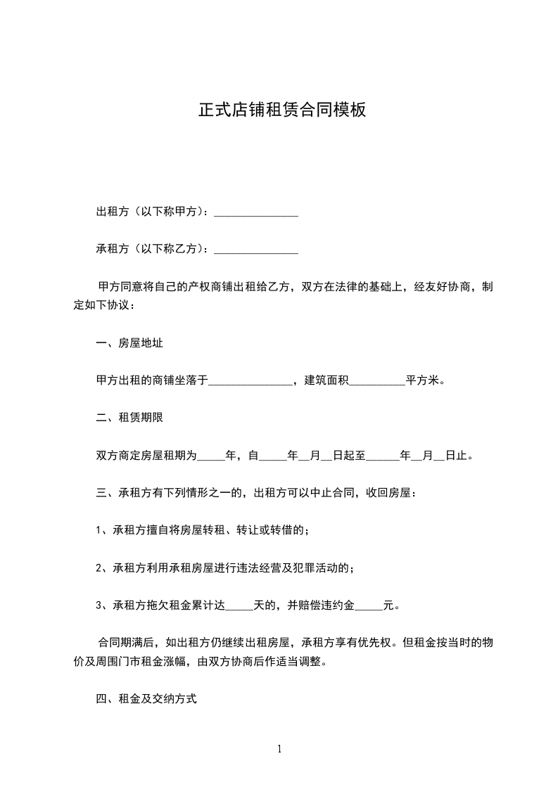 甲方出租的商铺坐落于_______________,建筑面积__________平方米。
