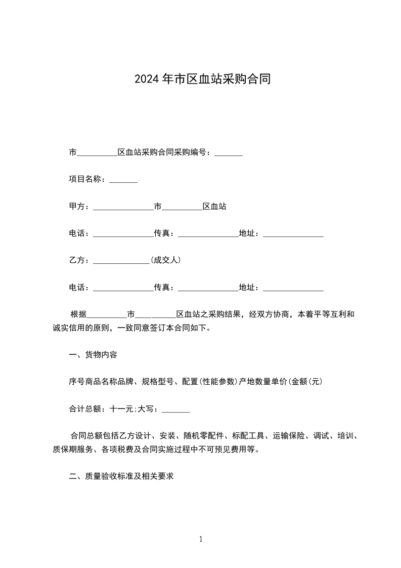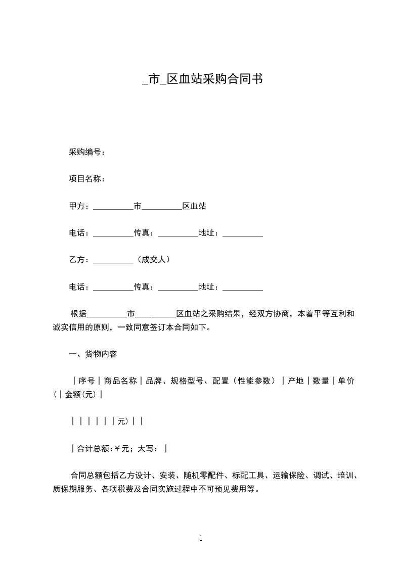 根据__________市__________区血站之采购结果,经双方协商,本着平等互利和诚实信用的原则,一致同意签订本合同如下。