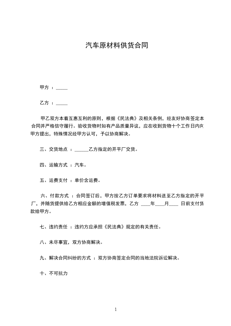 购货单位(甲方): 供货单位:(乙方):
