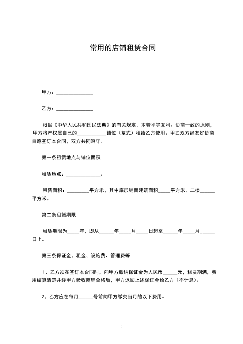 1、乙方须在签订本合同时,向甲方缴纳保证金为人民币______元,租赁期满,费用结算清楚并经甲方验收商铺合格后,甲方退回上述保证金给乙方(不计息)。