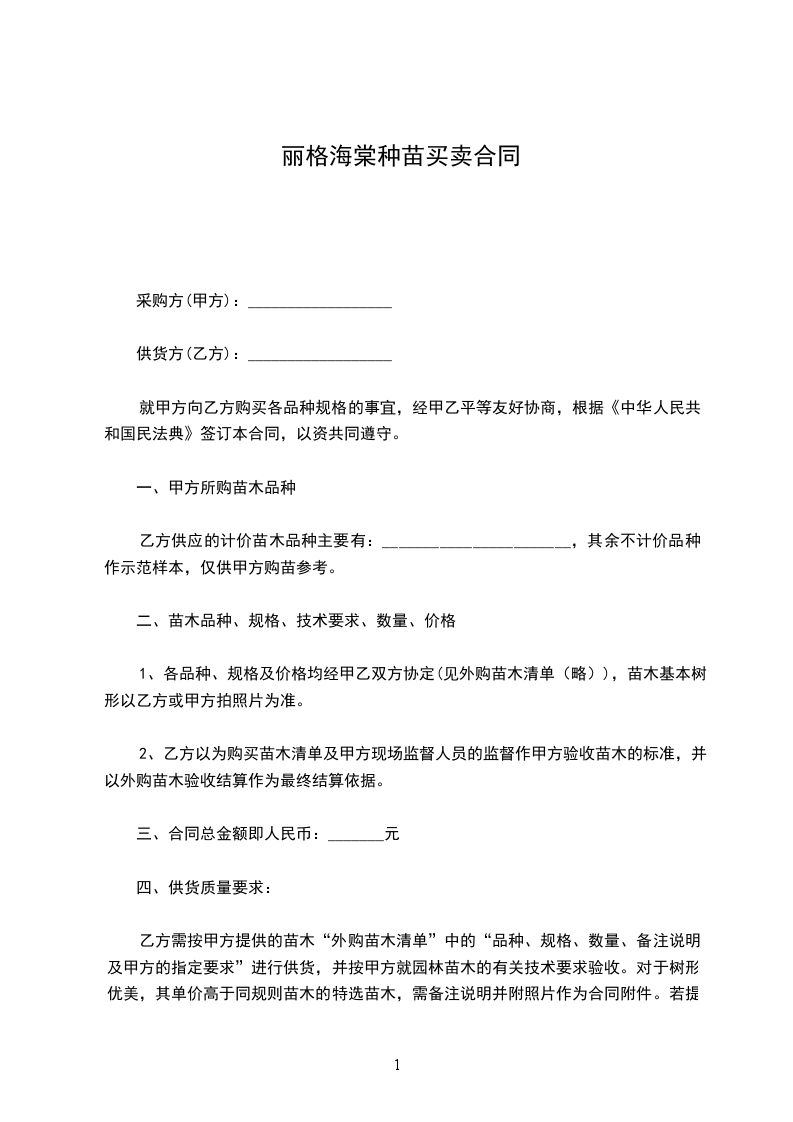 1、各品种、规格及价格均经甲乙双方协定(见外购苗木清单(略)),苗木基本树形以乙方或甲方拍照片为准。