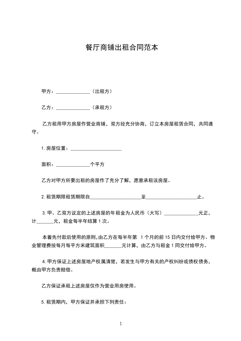 本着先付款后使用的原则,由乙方在每半年第1个月的前15日内交付给甲方。物业管理费按每月每平方米建筑面积_______元计算,由乙方与租金1同交付给甲方。