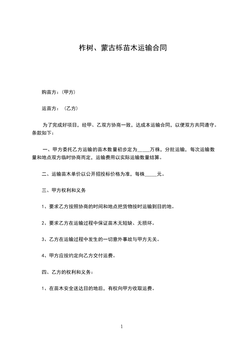 4、本合同为苗木买卖合同,乙方不承担甲方苗木成活率任何风险,但有为甲方提供技术指导的义务。