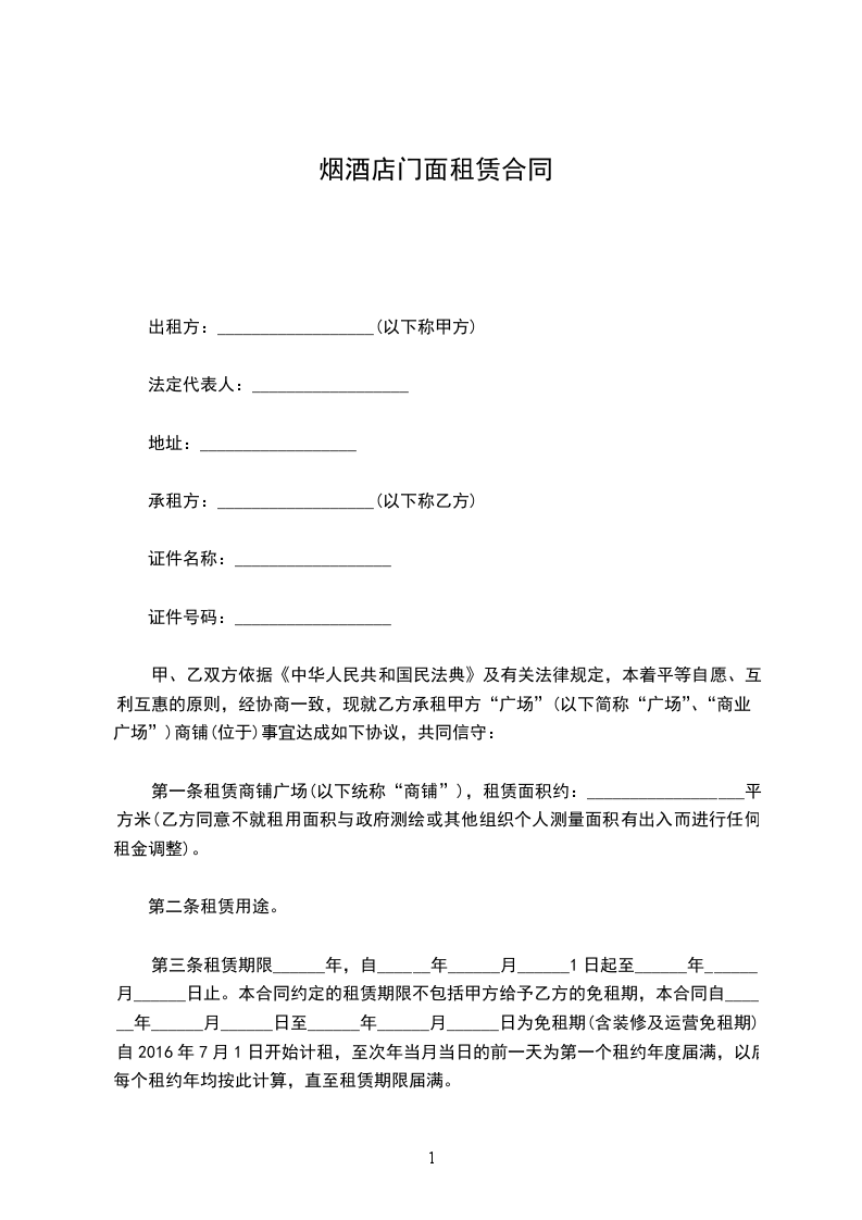 第三条租赁期限______年,自______年______月______1日起至______年______月______日止。本合同约定的租赁期限不包括甲方给予乙方的免租期,本合同自______年______月______日至______年______月______日为免租期(含装修及运营免租期),自2024年7月1日开始计租,至次年当月当日的前一天为第一个租约年度届满,以后每个租约年均按此计算,直至租赁期限届满。