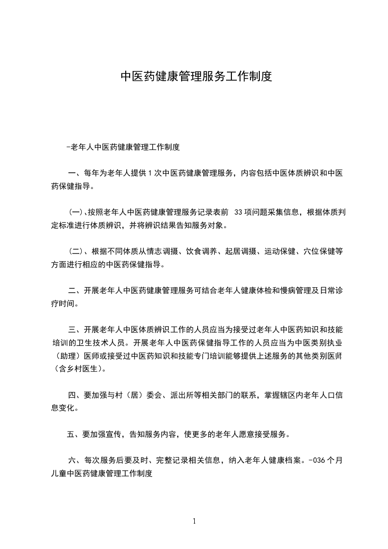 中医体质辨识。按照老年人中医药健康管理服务记录表前33项问题采集信息,根据体质判定标准进行体质辨识,并将辨识结果告知服务对象。0-36个月龄儿童中医药健康管理在不同月龄进行采集信息,现场保健指导、播放视频。
