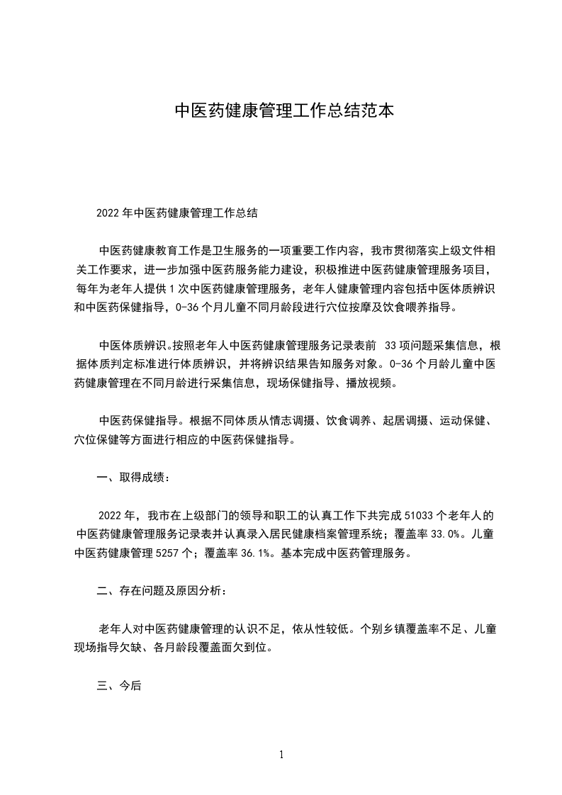 2024年中医药健康管理工作总结