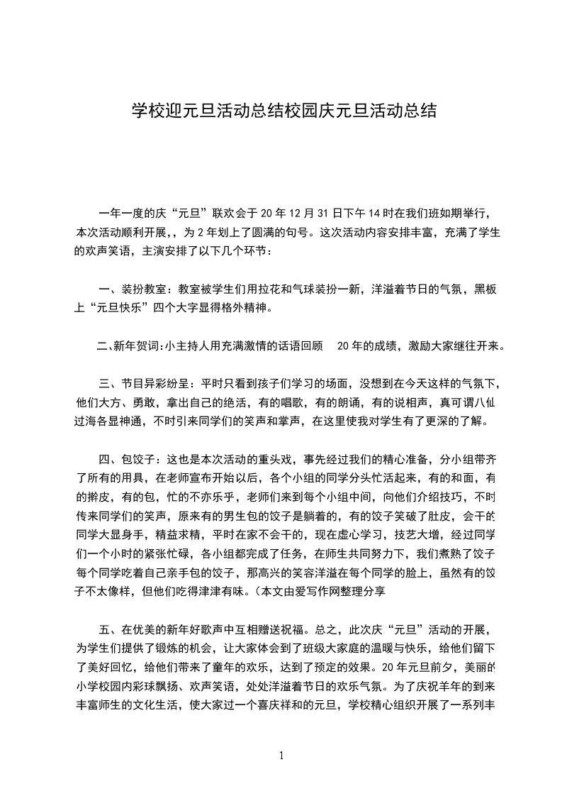 这次活动,愉悦了同学们的身心健康,也丰富了校园文化生活,使我们对学生有了更深的了解。 在新的一年里,在全体师生的共同努力下,我校一定会向着更好、更高、更强的目标前进,让学校成为孩子们健康成长、快乐生活、全面发展的乐土。