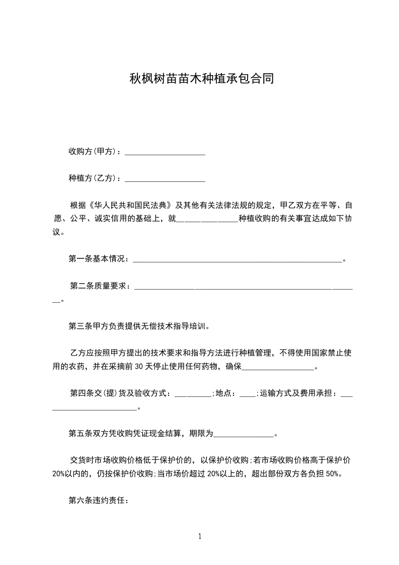 3.苗木栽植:本合同所供苗木由甲方负责栽植。