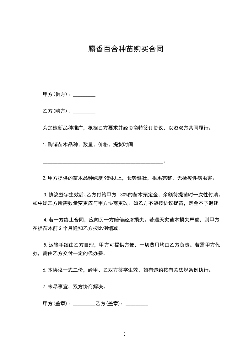麝香百合种苗购买合同