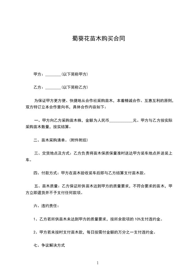 蜀葵花苗木购买合同